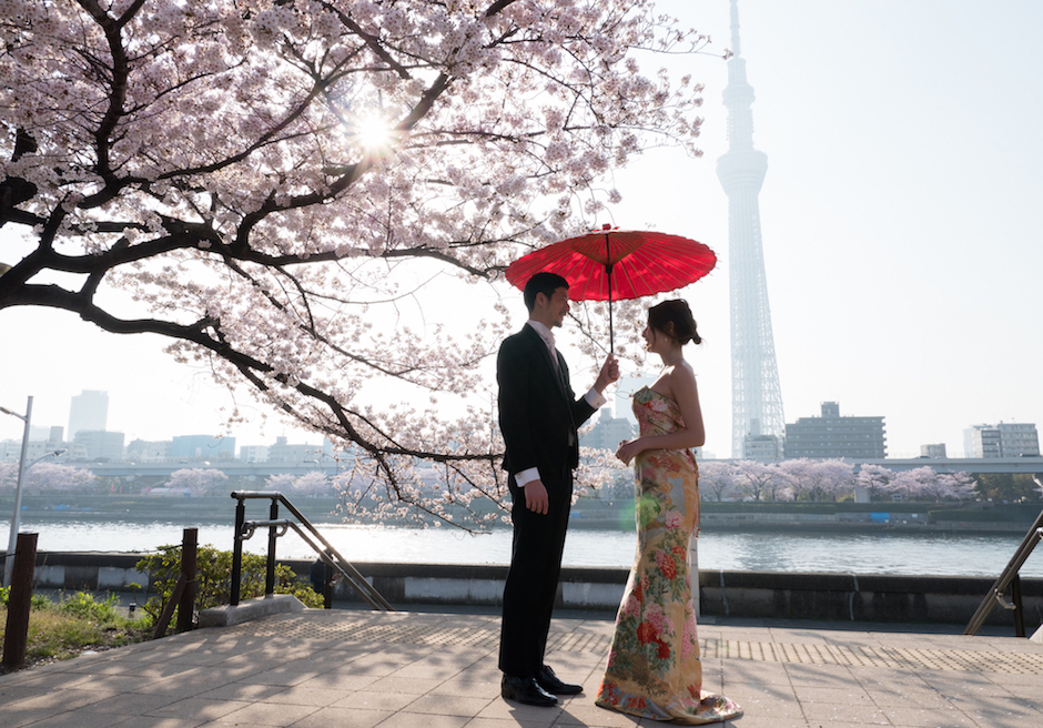 路边有很多小摊贩,晚上也能欣赏樱花的名所。